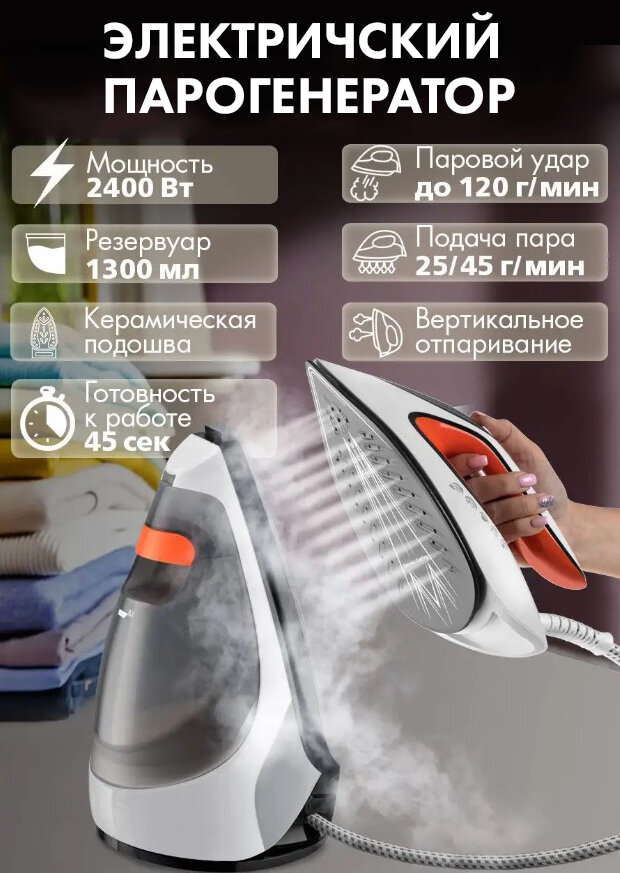 Утюг электрический проводной,с парогенератором 1.3л, вертикальная глажка,антипригарное покрытие,паровой,2400Вт,для дома,отелей,прачечных информация: