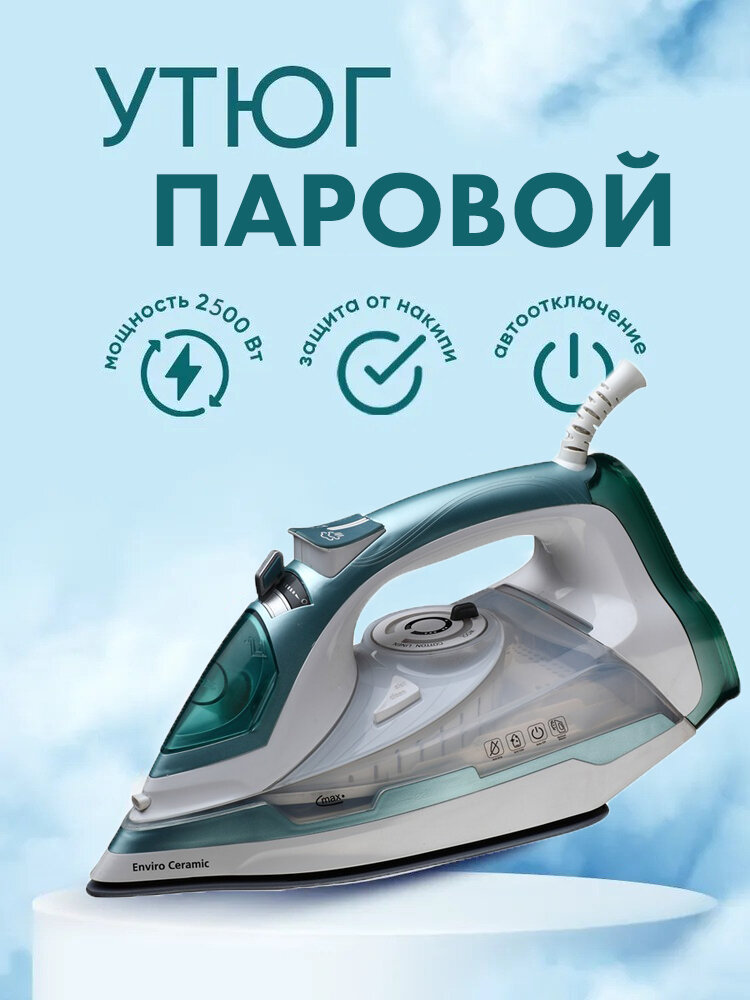 Домашний утюг паровой, с функцией вертикальной глажки, паровой удар, антипригарное покрытие, система самоочистки, 2600ВТ