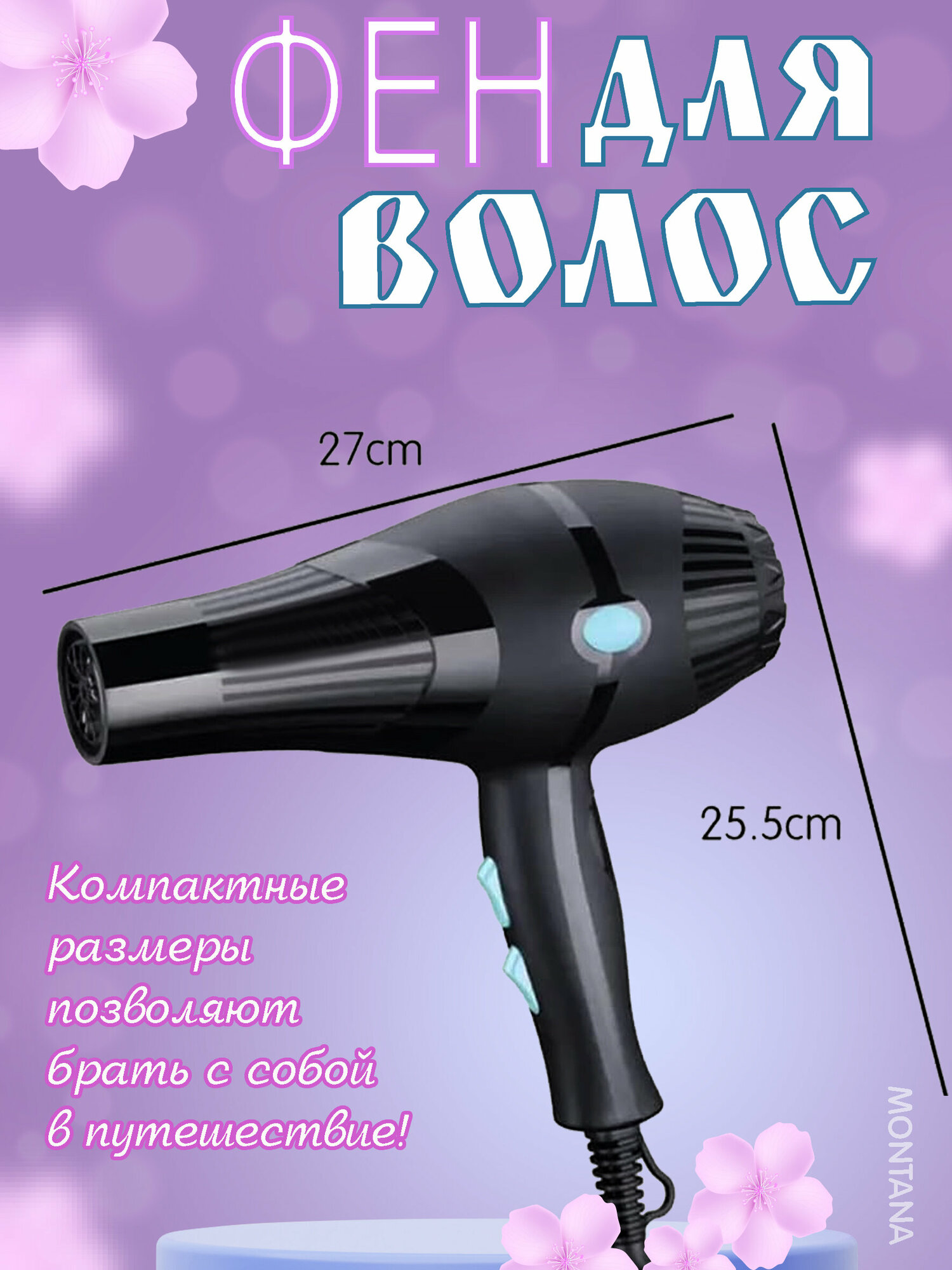 10 цен на Профессиональный фен,фен для укладки волос ,фен с насадкой ,мощный фен 2600 вт, фен, черный