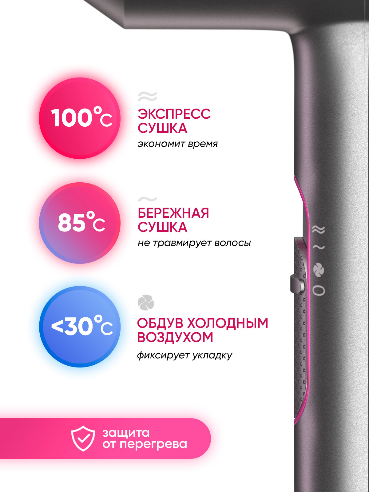 10 цен на Фен для волос Super Hair Dryer профессиональный с ионизацией / Набор для укладки волос, 3 насадки Розовый/Серый
