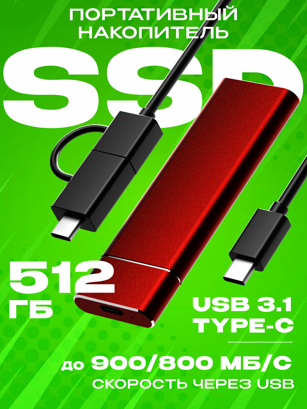 Внешний портативный SSD (Красн./512ГБ). Хранилище для смартфона, телефона, компьютера. информация: