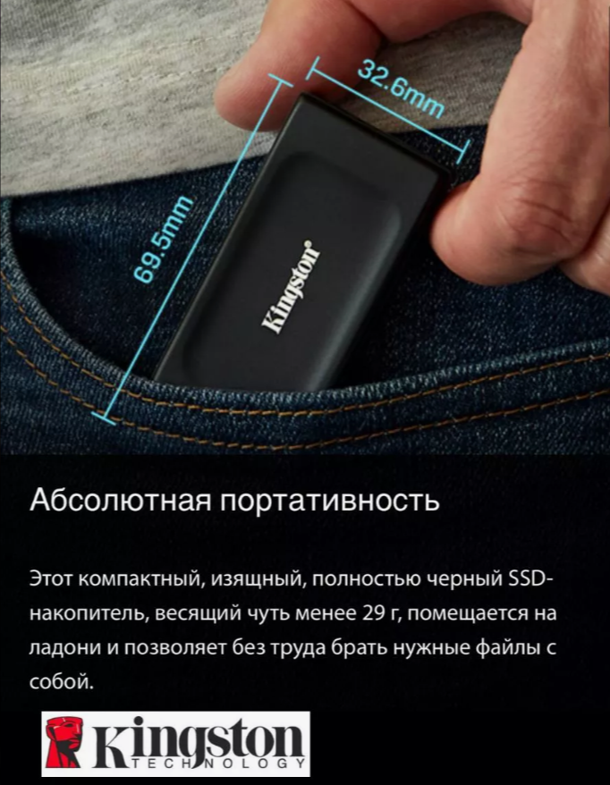 Отзывы на Kingston внешний SSD накопитель Kingston XS1000 1Tb , USB 3.2 Gen 2 (SXS1000/1000G)