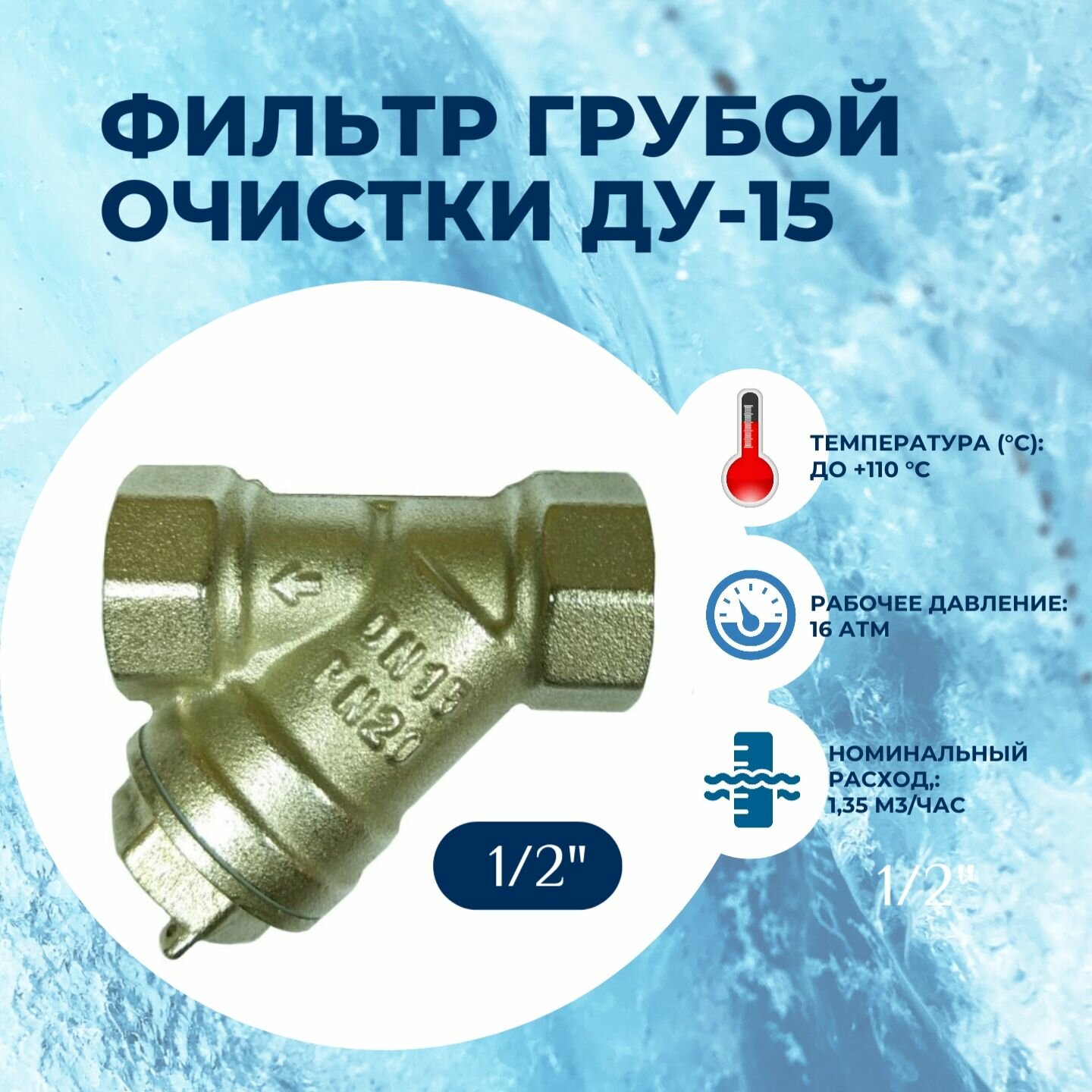 Фильтр косой грубой очистки ЭКО НОМ латунь никелированная Ду-15 информация: