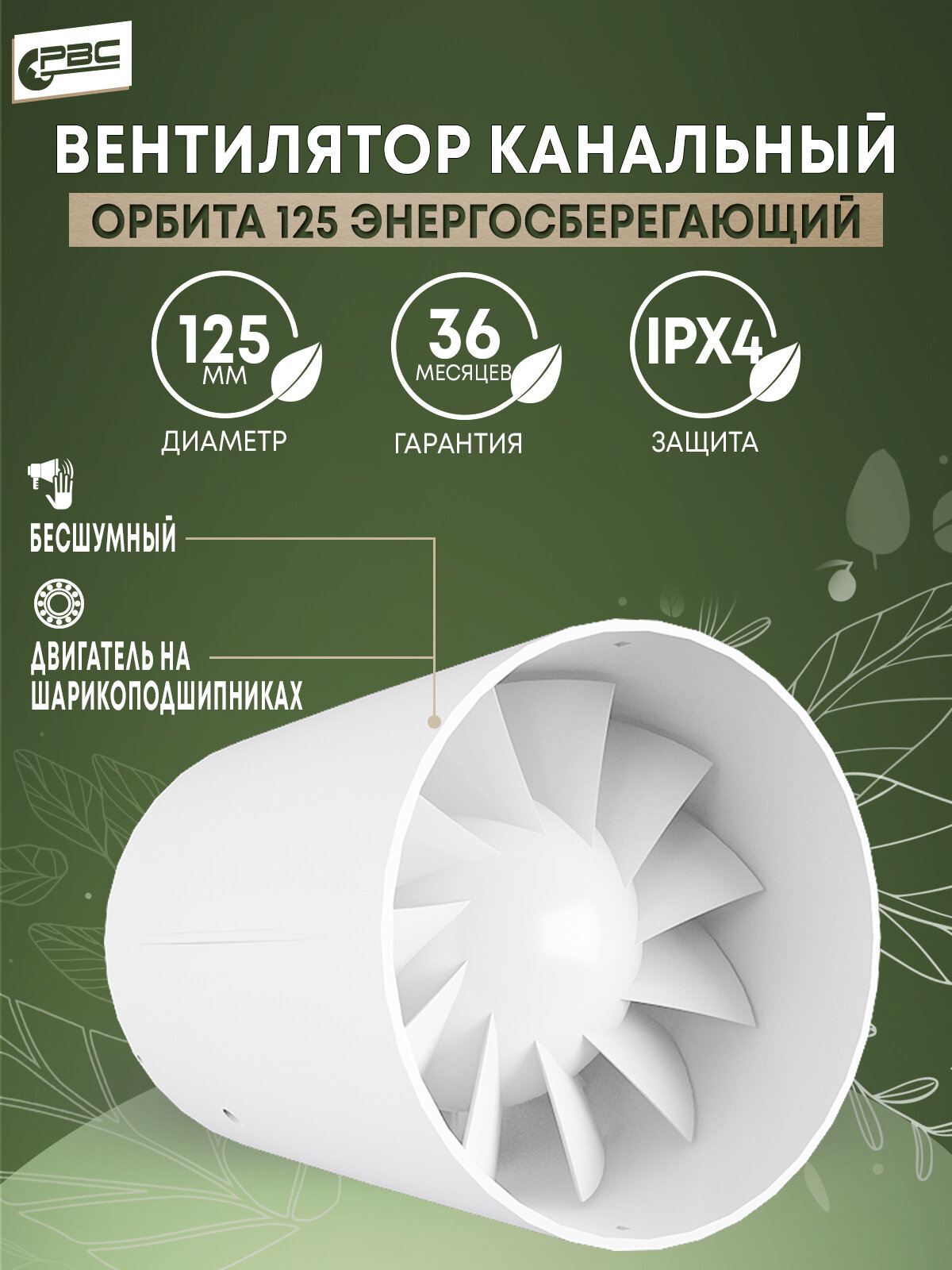 Вентилятор канальный бесшумный РВС Орбита 125мм, 17 Вт, 33 дБ, 198 м3/ч информация: