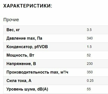 | Уровень шума | 55 дБ |