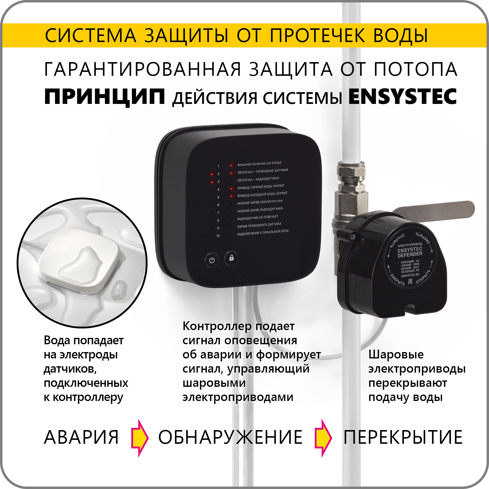 Датчик протечки воды ENSYSTEC Leak Sensor 3 м (черный) 1 300 ₽