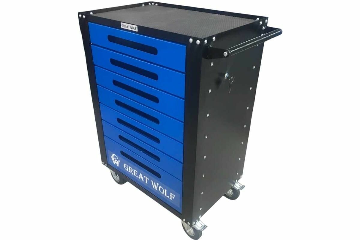 Отзывы на Инструментальная тележка Great Wolf 7 ящиков, центральный замок, колеса с тормозом, синяя GWT-B7L