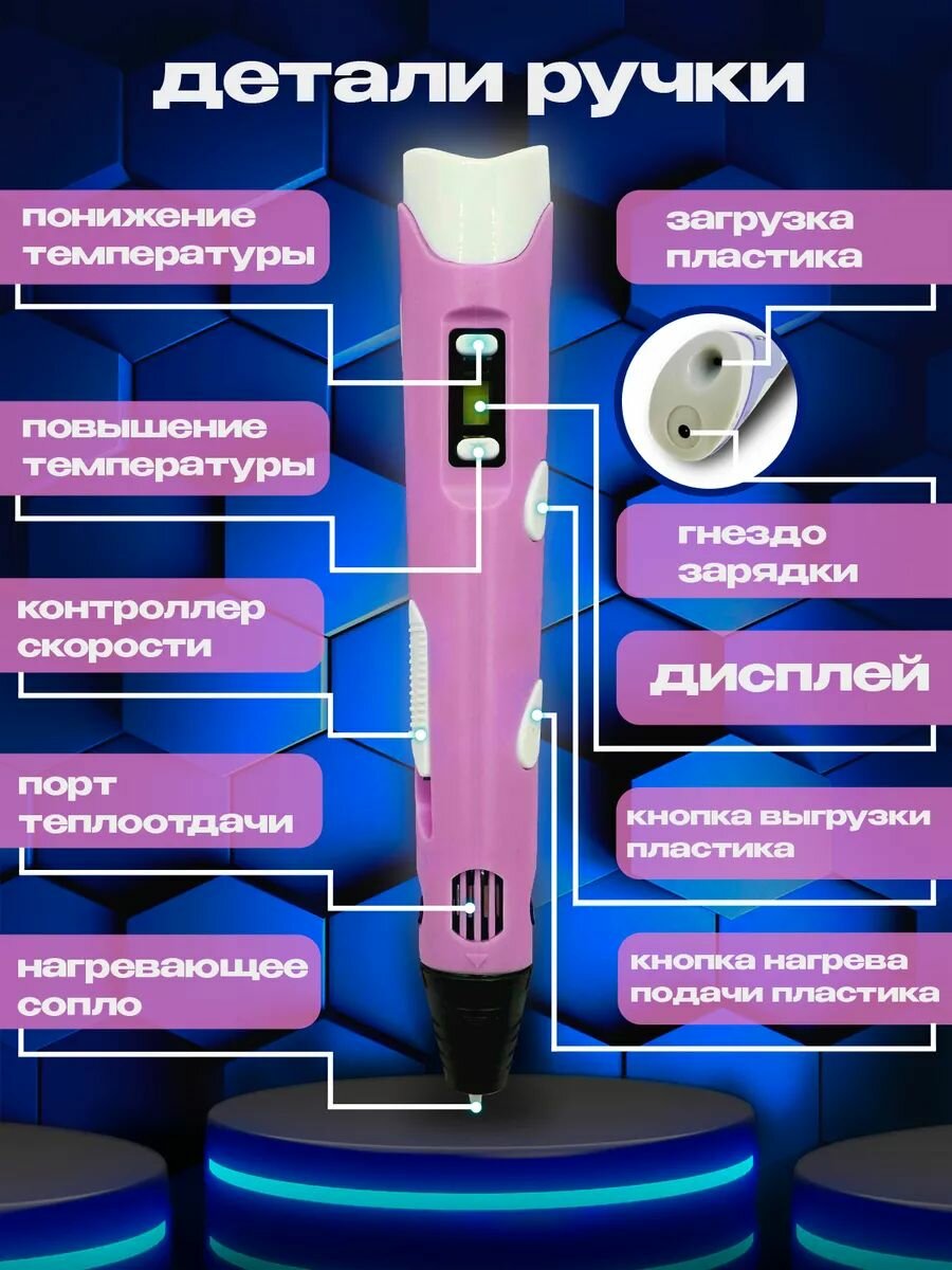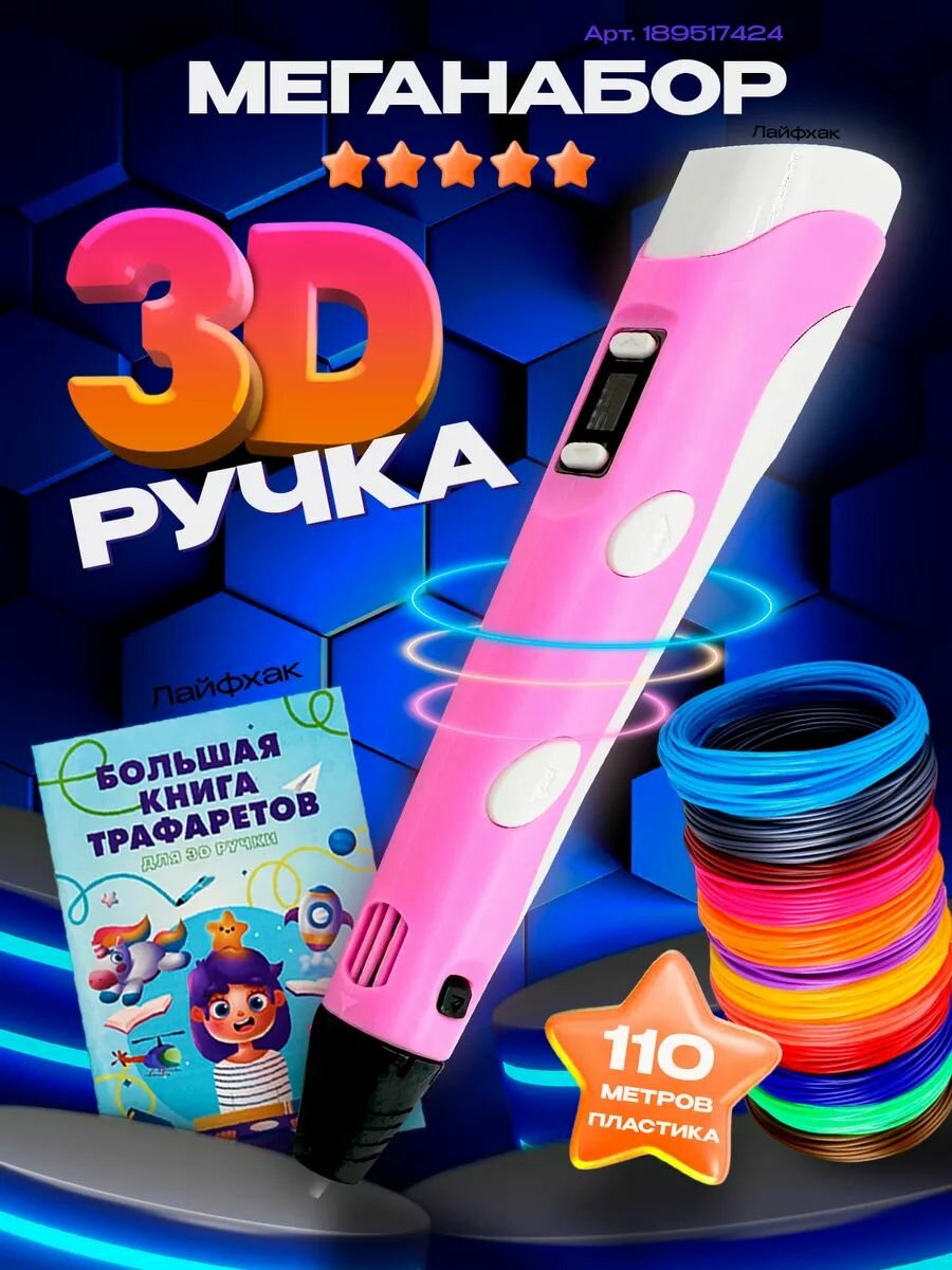10 цен на 3д ручка с набором пластика 110м трафарета в подарок - Розовый