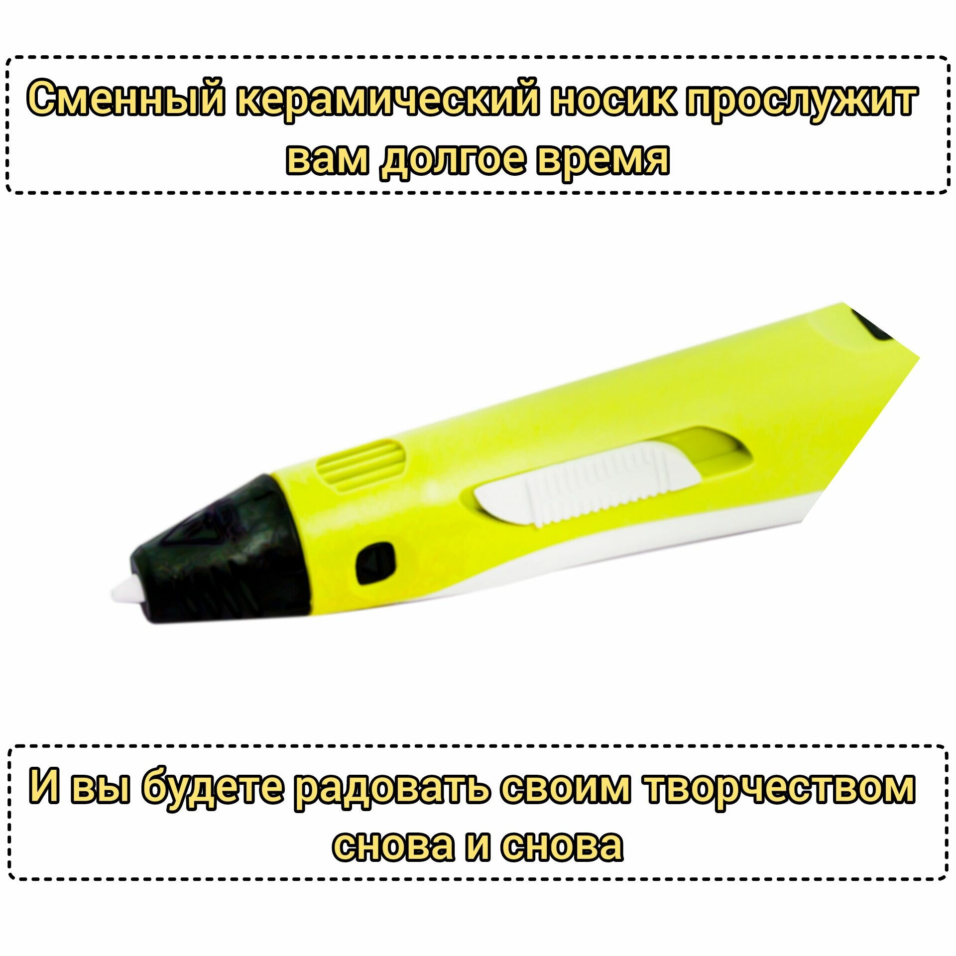 Комплект 3Д ручка NIT-PEN3 желтая + пластик PLA 10 цветов по 10 метров, в упаковке: 1