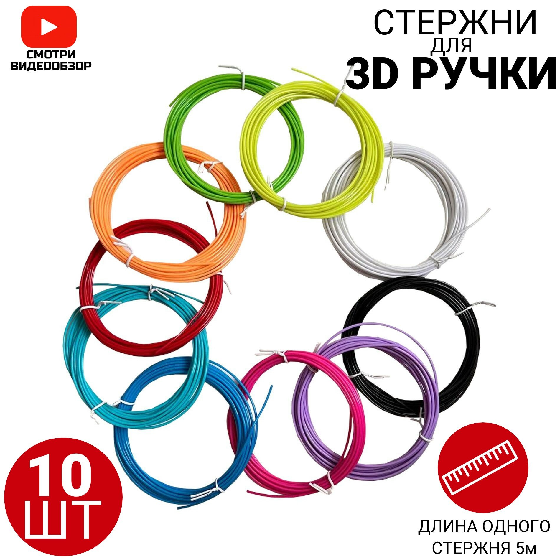 Стержни для 3D ручки/ Набор пластика ABS/ Рисование для детей/10цветов по 5 метров/ информация: