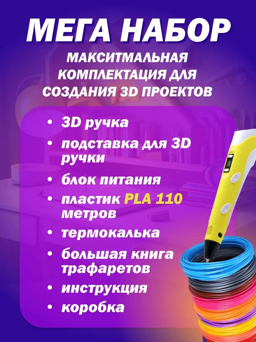 3д ручка с набором пластика 110м трафарета в подарок - желтый информация: