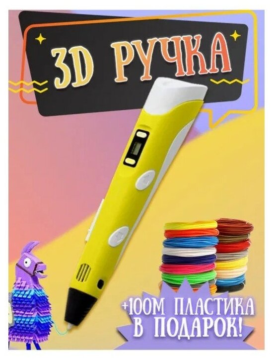 Комплект 3Д ручка NIT-PEN3 желтая + пластик PLA 10 цветов по 10 метров, в упаковке: 1