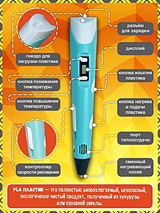 3D ручка ABS+PLA c ЖК дисплеем