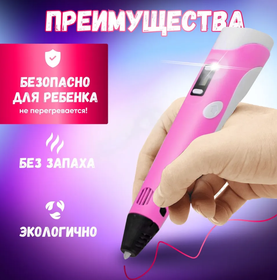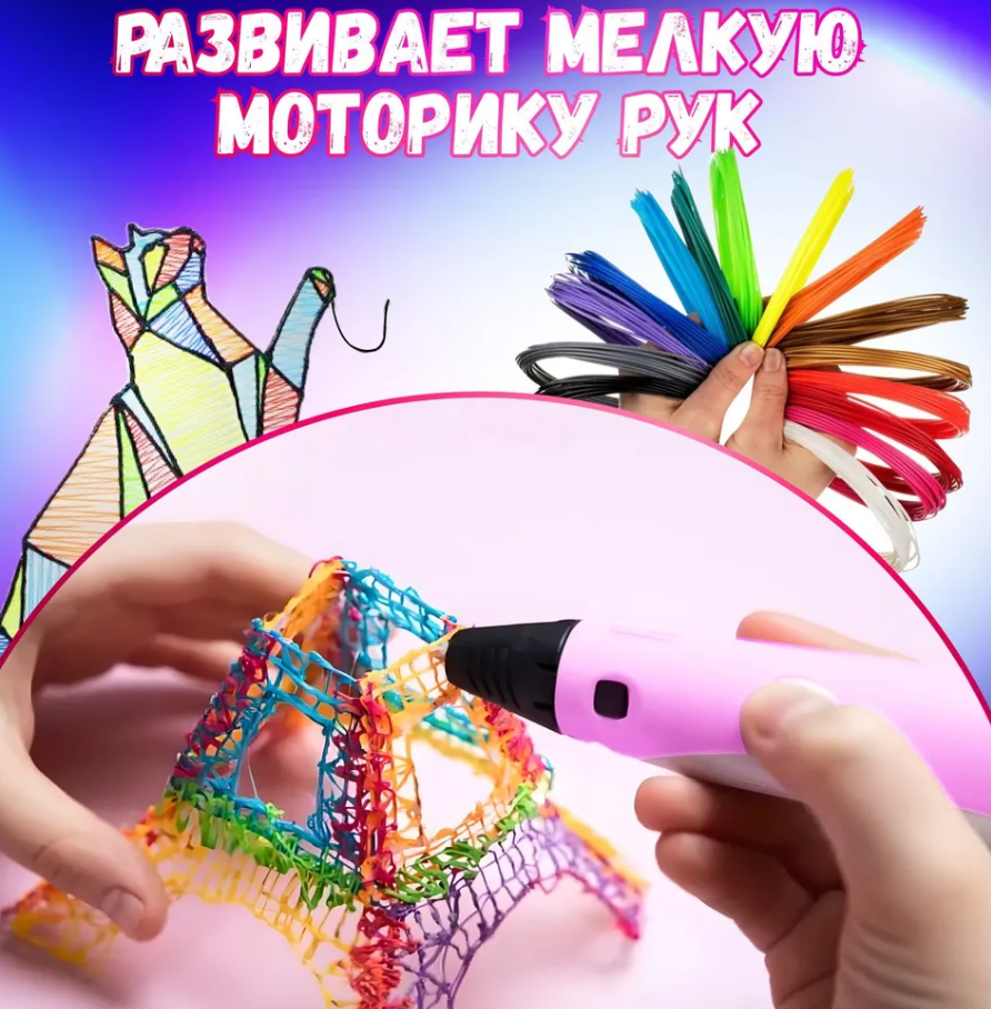 Отзывы на 3D ручка 3D BABY PEN-3 розовая\Мир фантазий в твоих руках с трафаретами розовая 100 метров пластика В подарок!