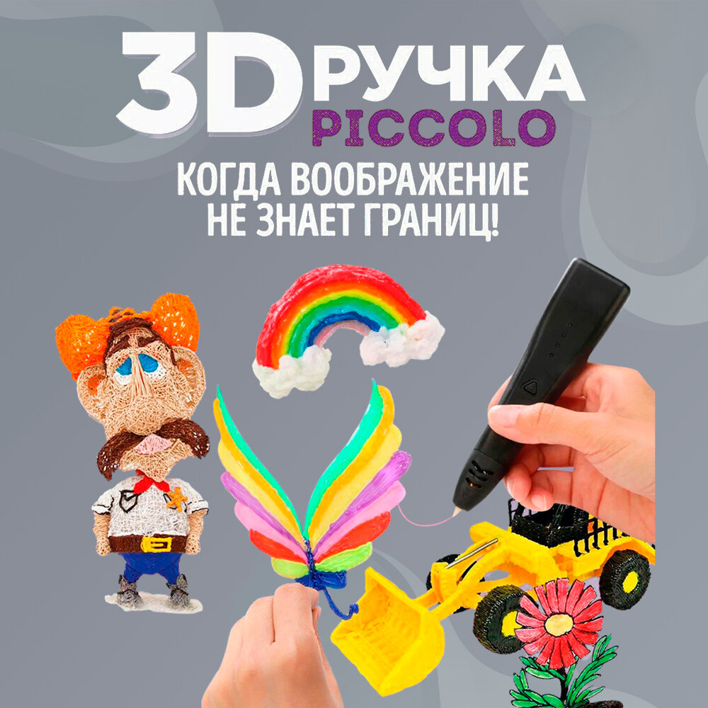 Отзывы на Набор для 3Д творчества 4в1 FUNTASY 3D-ручка PICCOLO (Черная)+ PLA 17 цветов + Трафарет , картриджи , стержни , триде , подарок для ребенка