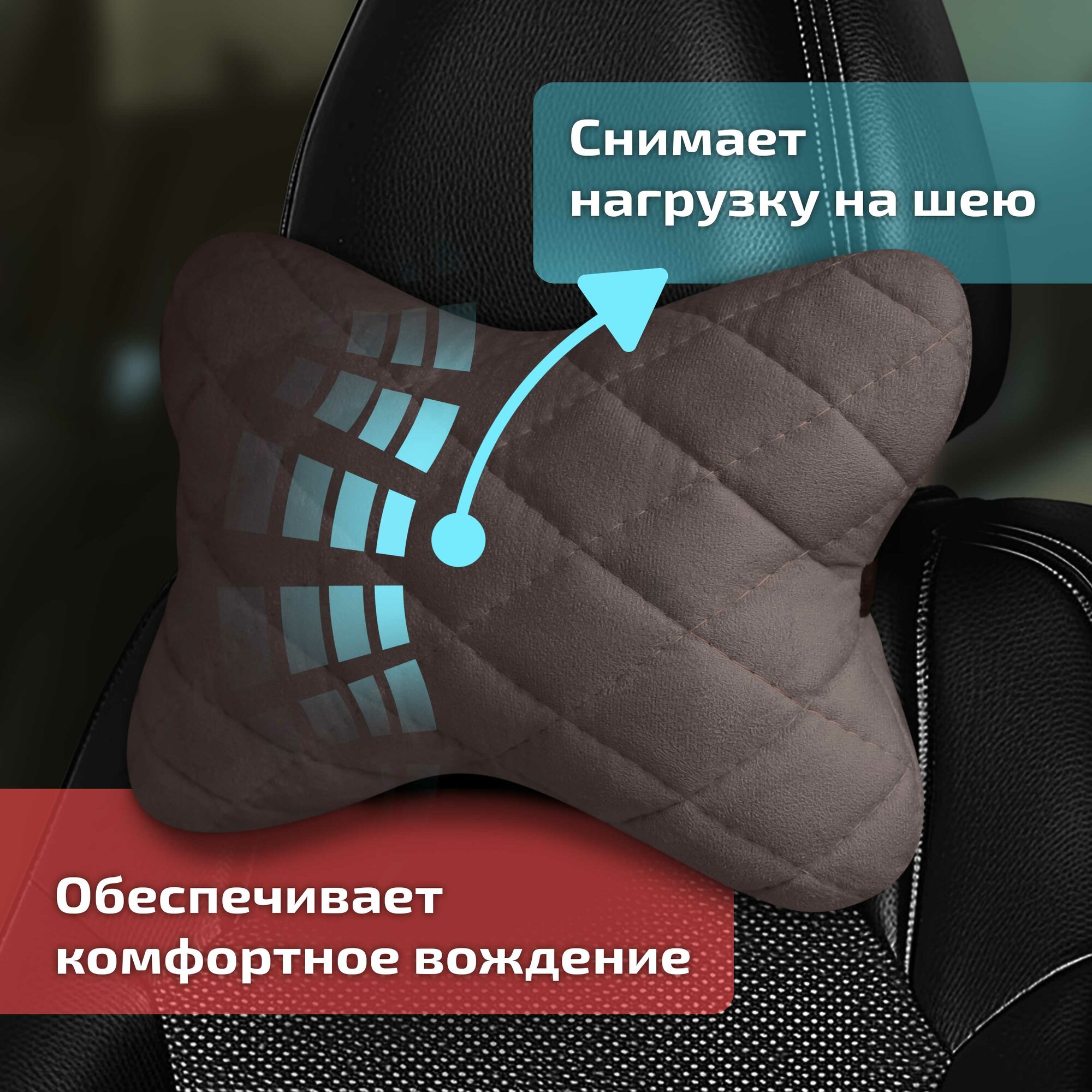 Автомобильная подушка - косточка из алькантары на подголовник коричневая информация: