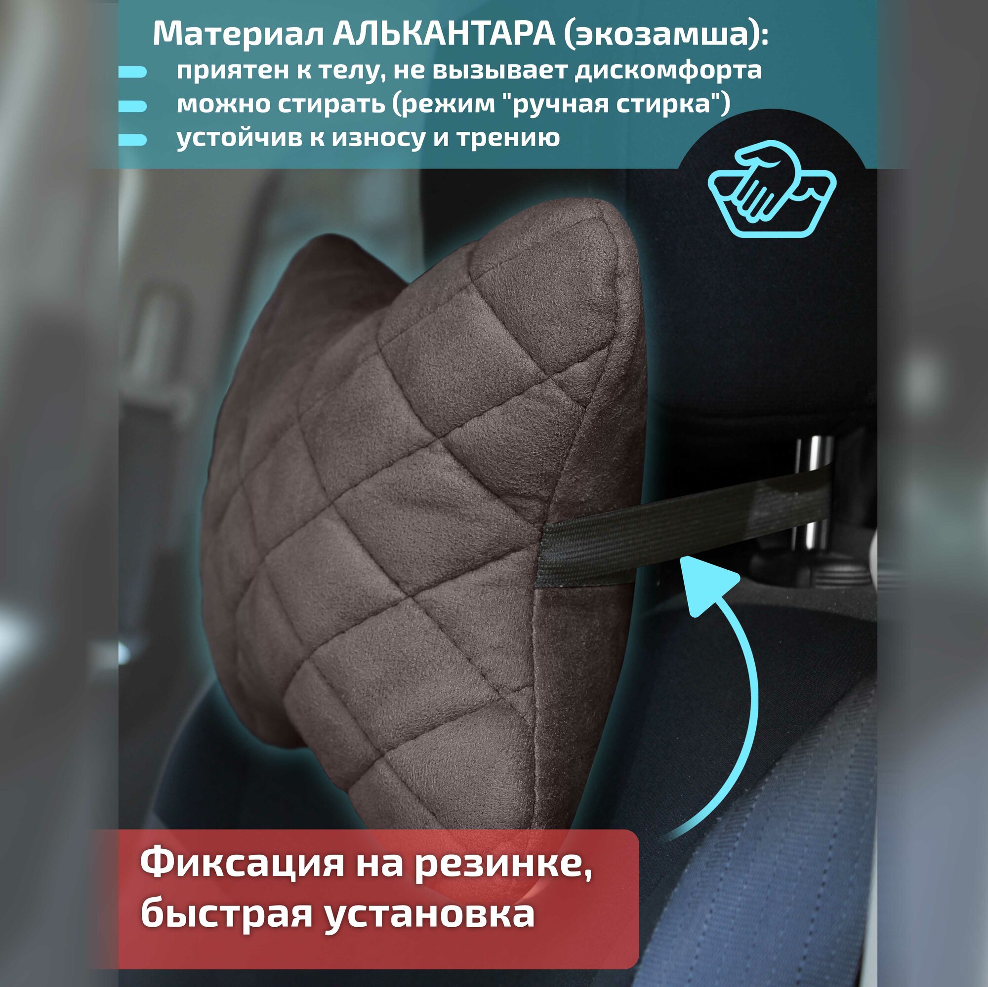 10 цен на Автомобильная подушка - косточка из алькантары на подголовник коричневая