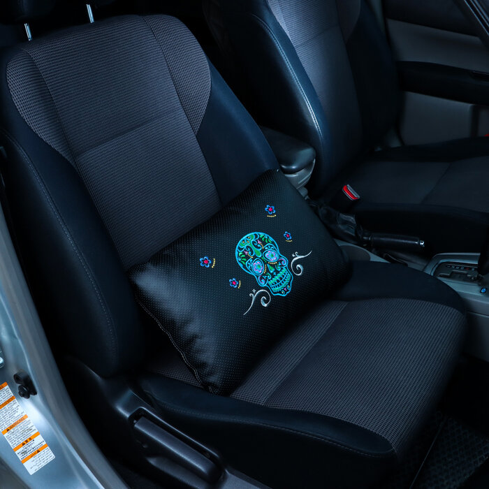Отзывы на Подушка автомобильная матех черепа LINE, 45 х 28 х 12 см, синий