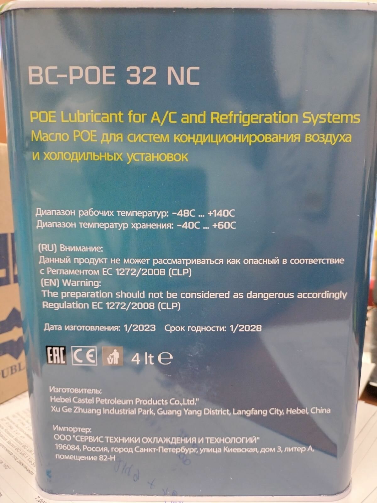 Масло холодильное Becool BC-POE 32 NC (4 л) информация: