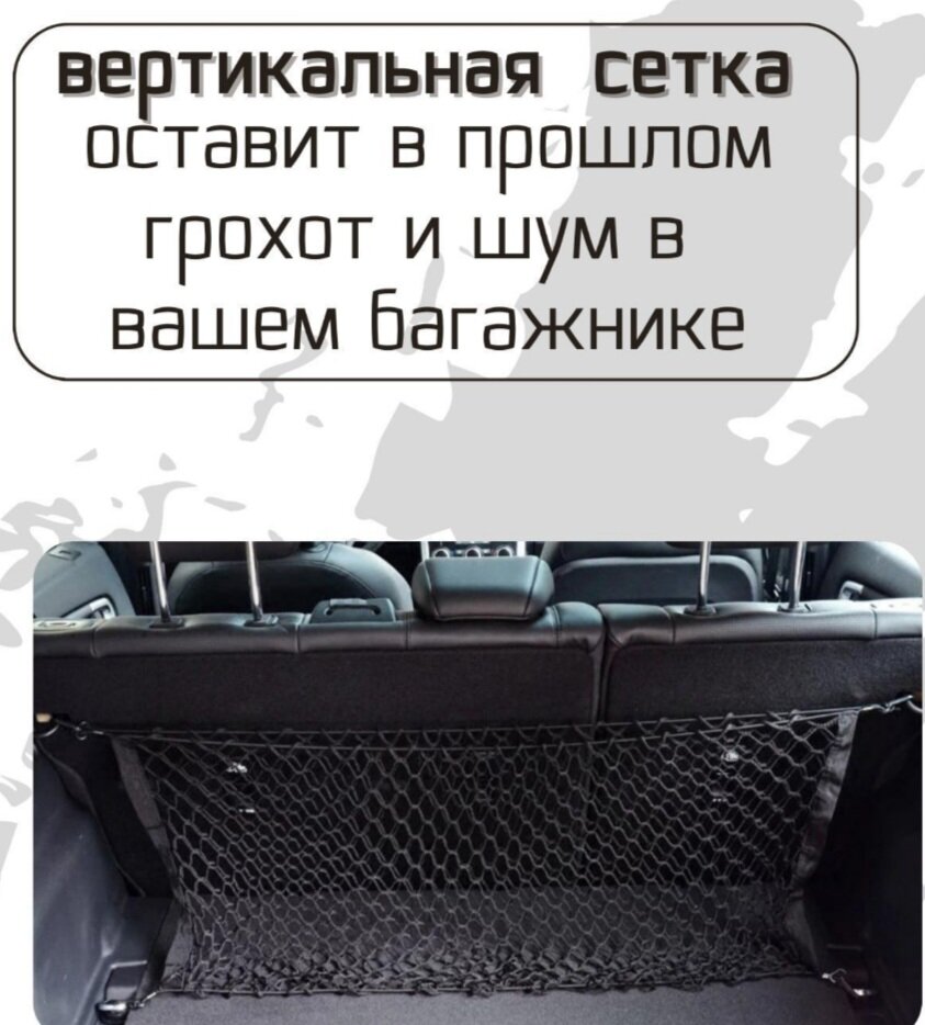 Отзывы на Сетка - карман в багажник автомобиля 110x60см. Прочная сетка с карабинами для фиксации груза.