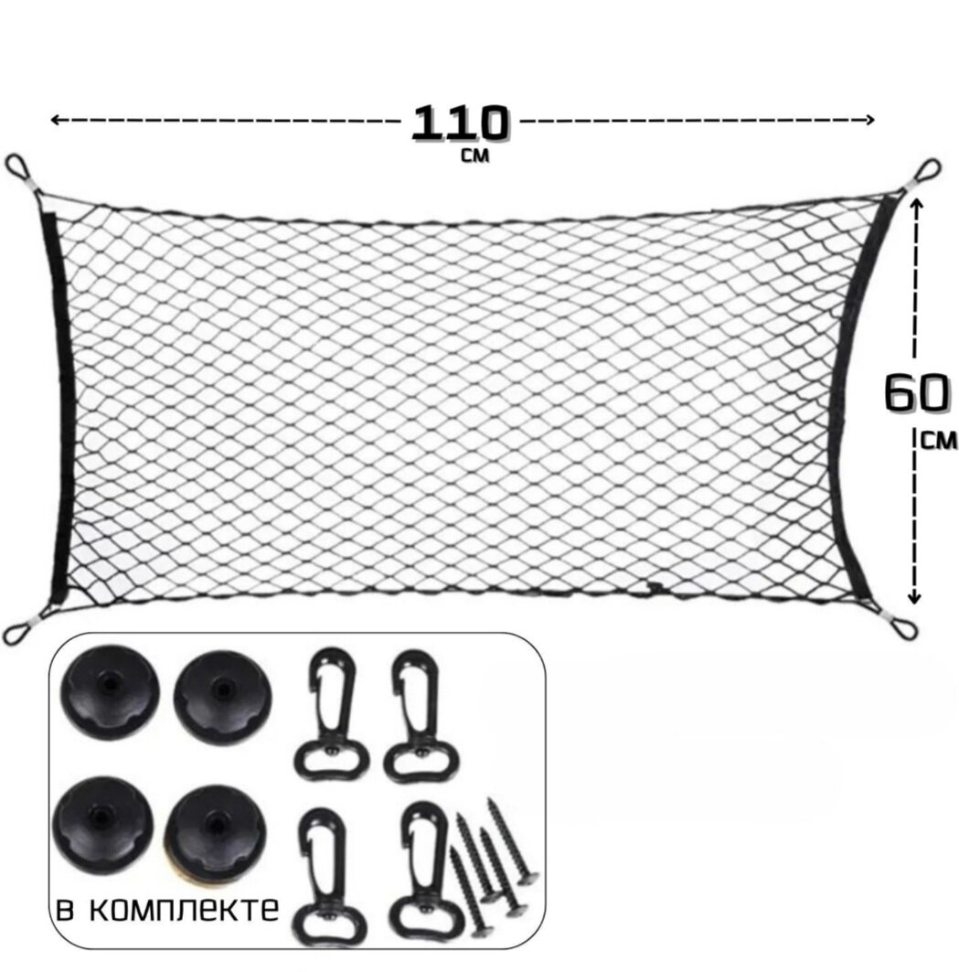10 цен на Сетка - карман в багажник автомобиля 110x60см. Прочная сетка с карабинами для фиксации груза.