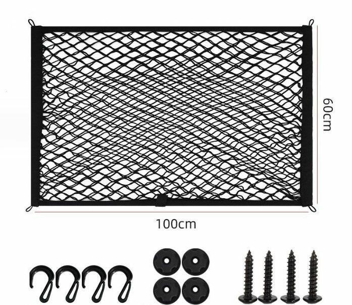 10 цен на Сетка в багажник автомобиля двойная прошитая со всех сторон эластичная, в два уровня 100х60