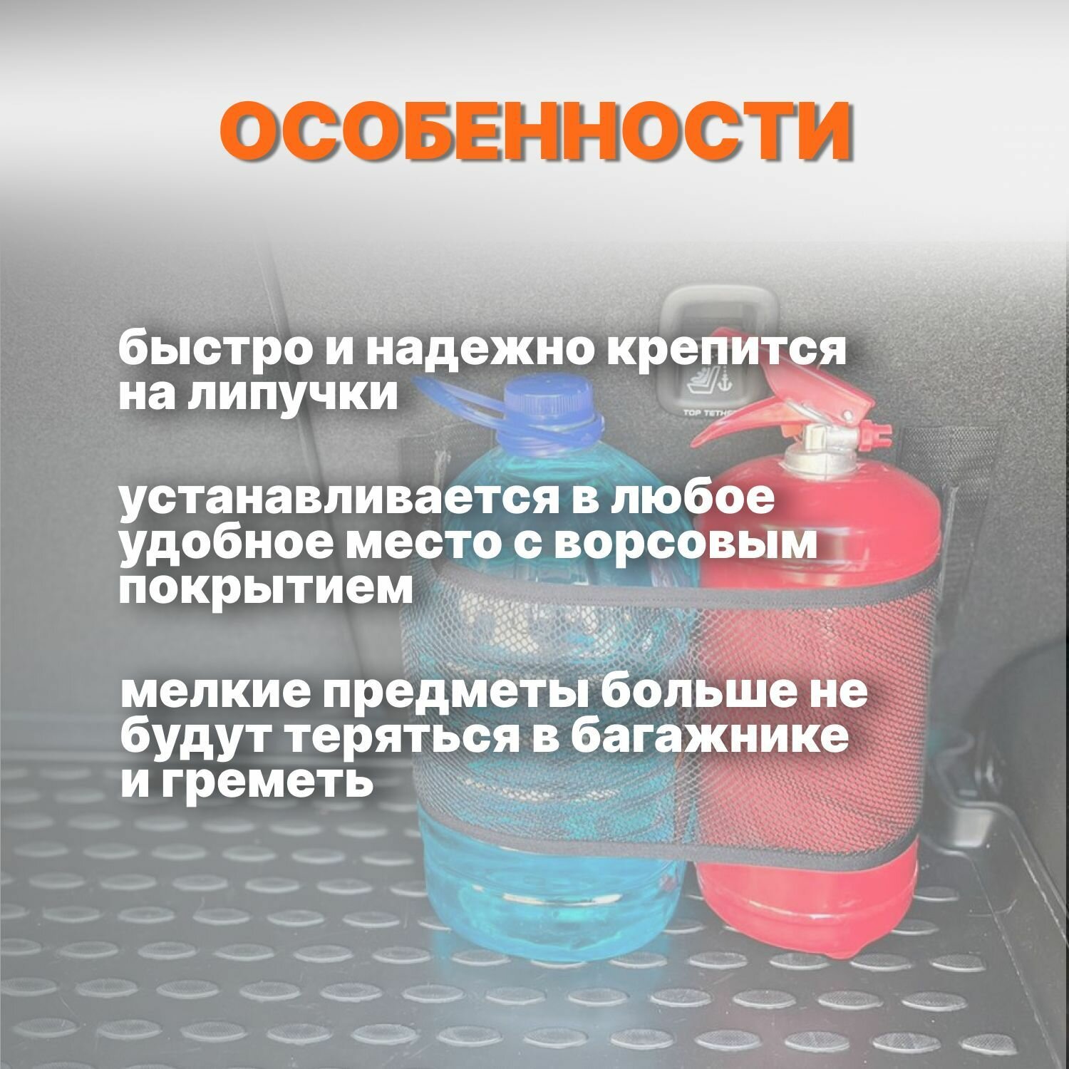 Карман в багажник на липучке универсальный / сетка органайзер в автомобиль / держатель крепление в машину