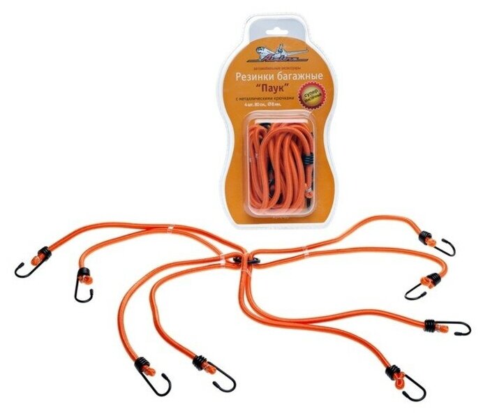 Резинка для крепления багажа "Паук", 120 см, d8 мм, металлические крючки, набор 4 шт информация: