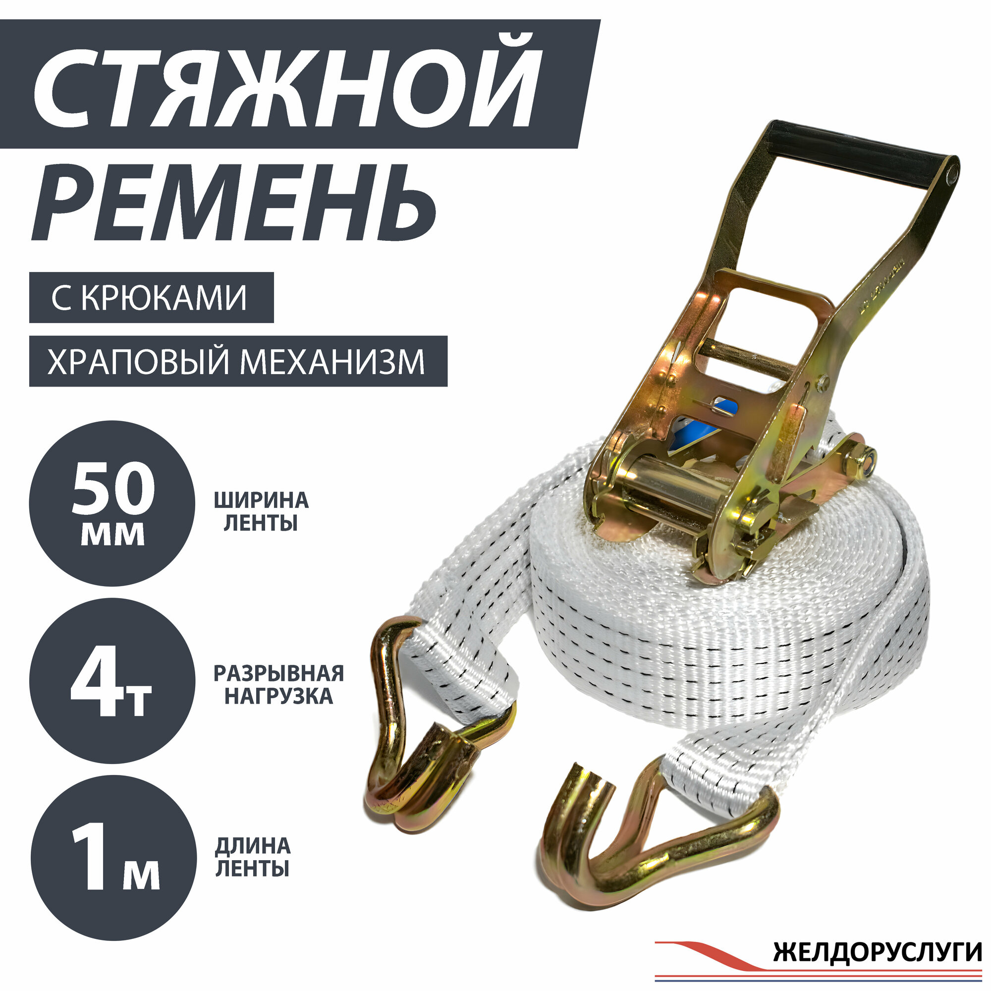 | Подробная комплектация | Стяжной ремень 50 мм с храповым механизмом 2000 dan и 2-мя крюками двойными стальными |