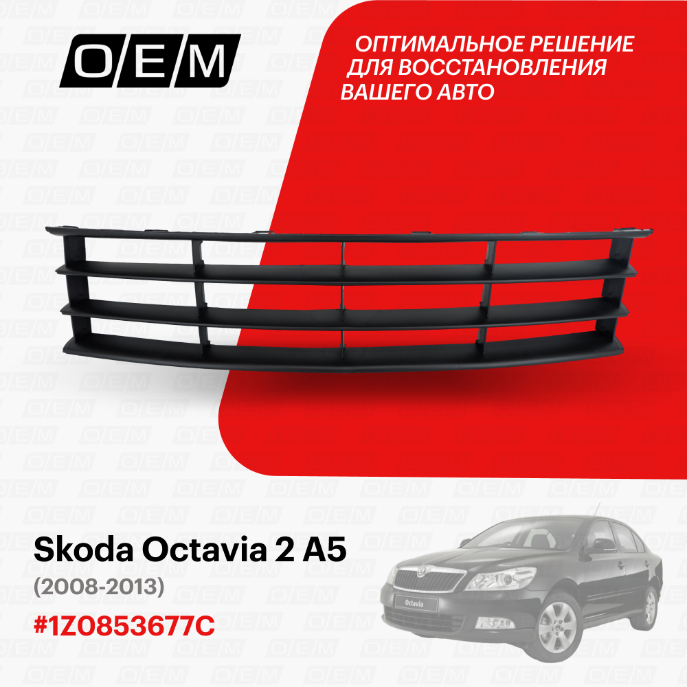 Отзывы на Решетка в бампер нижняя для Skoda Octavia 2 A5 1Z0853677C, Шкода Октавиа, год с 2008 по 2013, O.E.M.