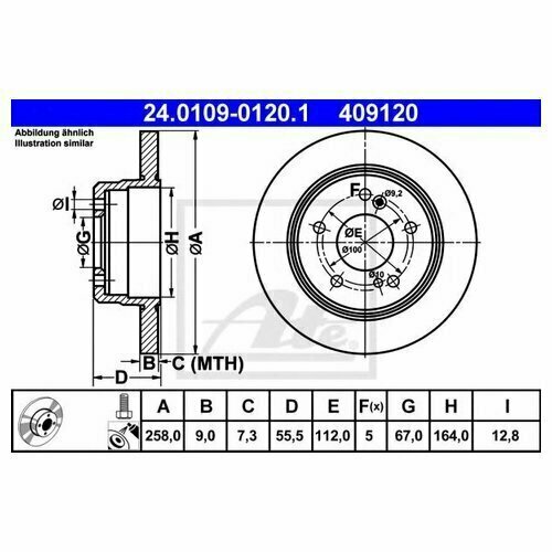 ATE 24-0109-0120-1 (2014230912 / 2014231112 / 2014231212) торм.диск зад.[258x9] 5 отв. (Комплект 2 штуки)