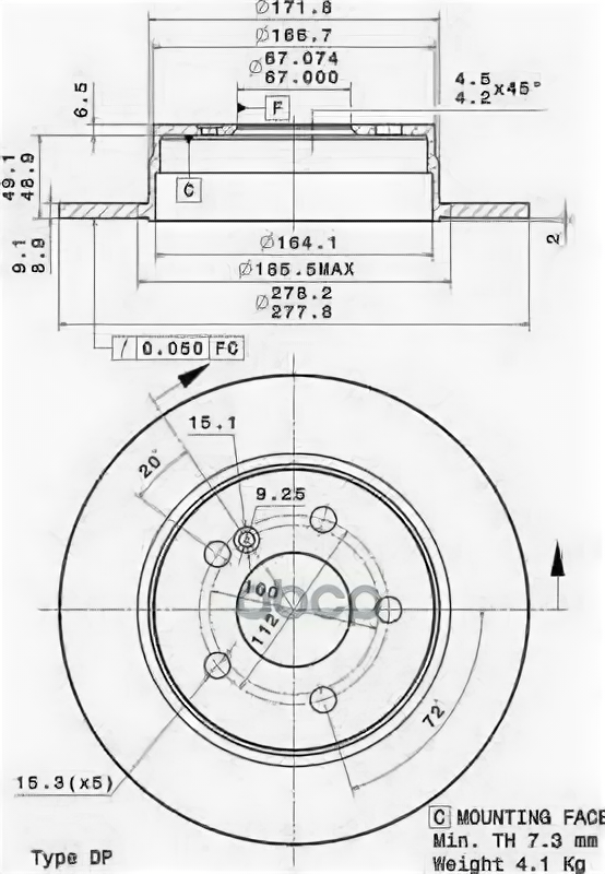Диск тормозной передний для citroen c4 i-ii, peugeot 207, 307, 308 DF4183 Trw DF4183