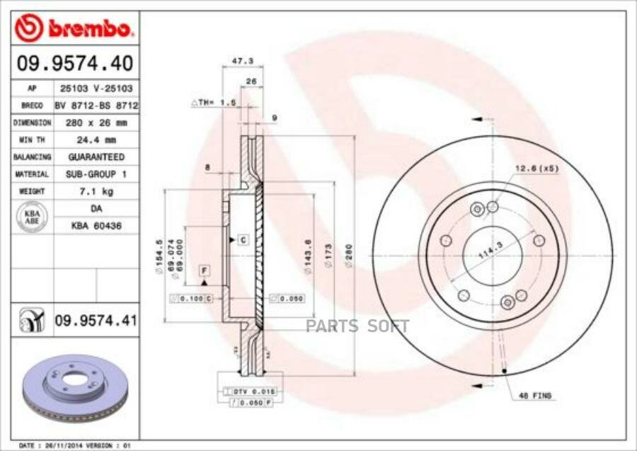 BREMBO 09957441 Диск торм. пер.[280x26] 5 отв. 2шт информация: