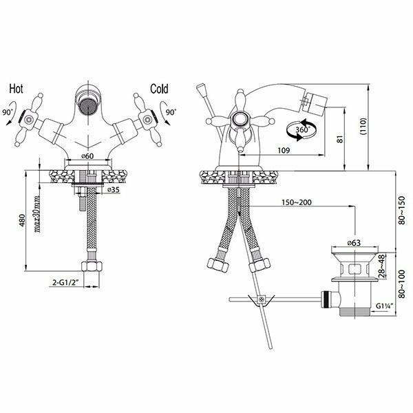 Смеситель Cezares Golf GOLF-BS1-03/24 для биде с донным клапаном 33 670 ₽