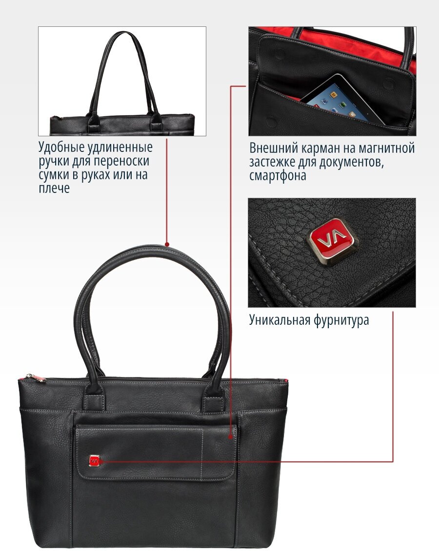 Сумка для ноутбука 15.6" Riva 8991 черный, искусственная кожа, женский дизайн