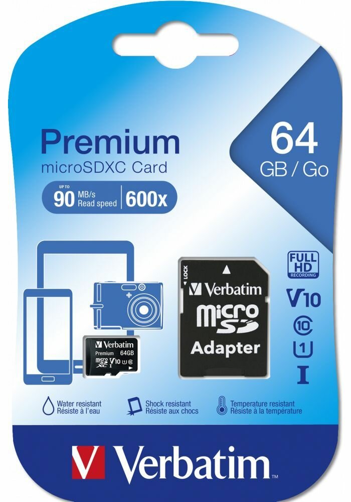 10 цен на Карта памяти VERBATIM 64GB 90MB/S MICROSD CLASS 10 (INC ADAPTOR) 44084