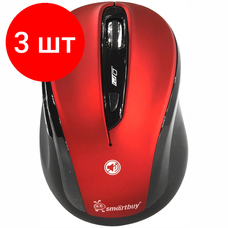 Комплект 3 шт, Мышь беспроводная Smartbuy 612AG, бесшумная работа кнопок, красный, 5btn+Roll информация: