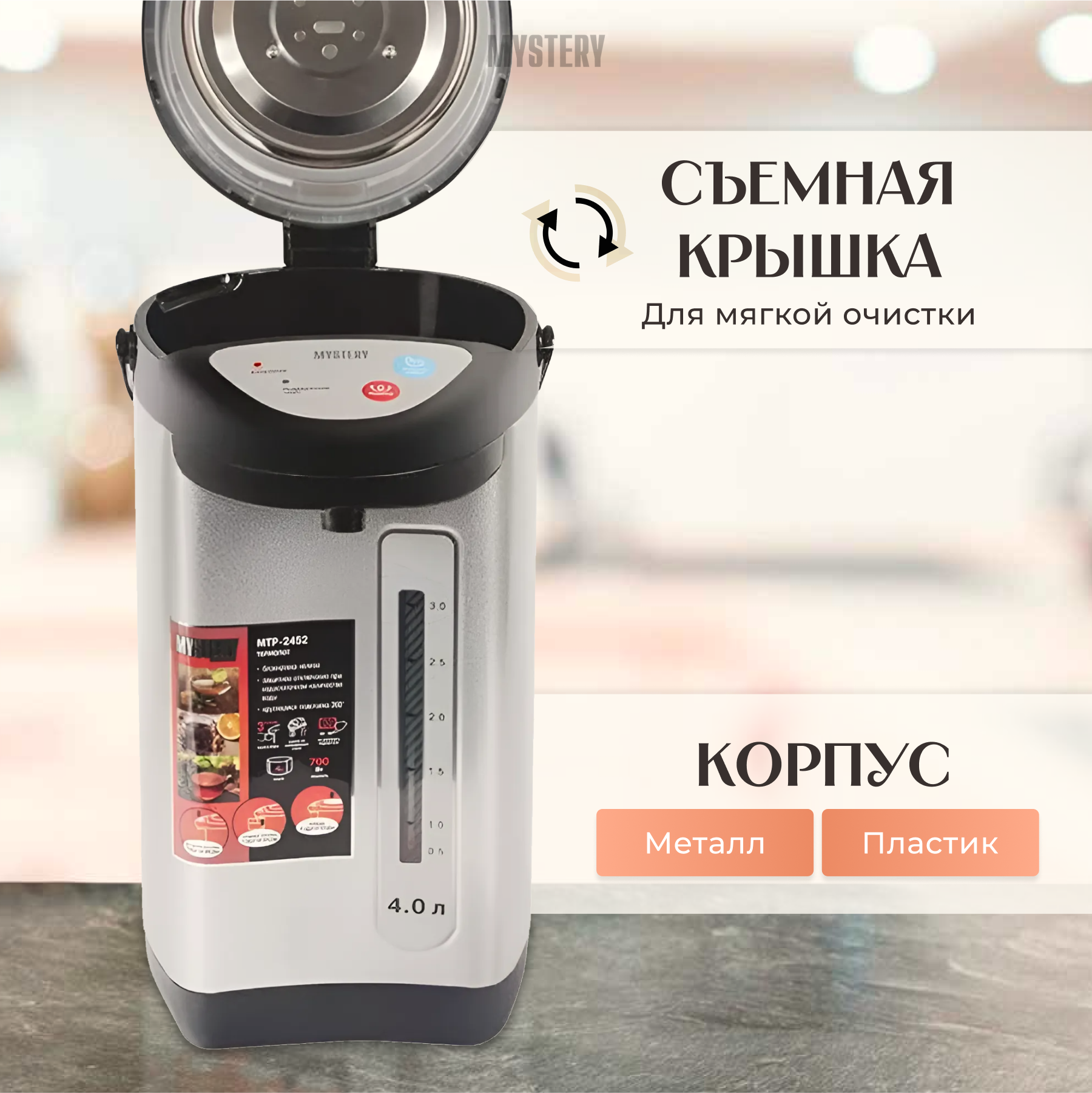 Термопот MYSTERY MTP-2442 700 Вт 4.3 л металл/пластик серебристый белый 5 033 ₽