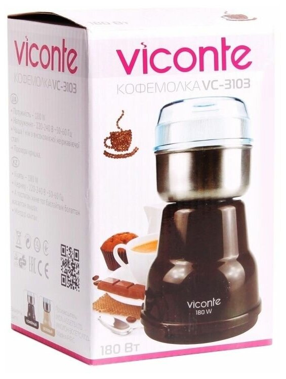 Кофемолка электрическая VICONTE 180W бежевая информация: