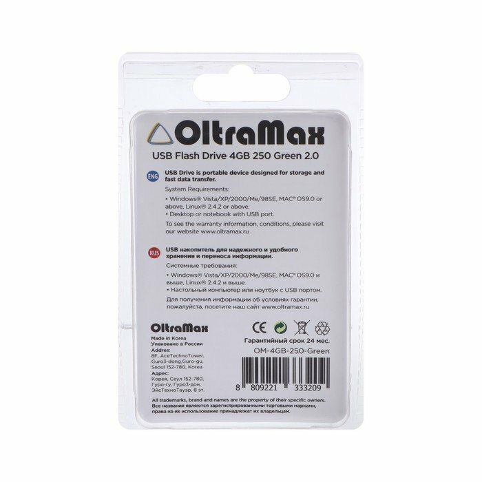 10 цен на Флешка OltraMax 250 4 ГБ, green