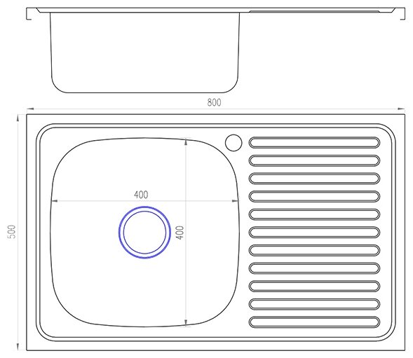 Кухонная мойка Mixline Накладная 80х50 нержавеющая сталь 0,4мм (4630030631699)