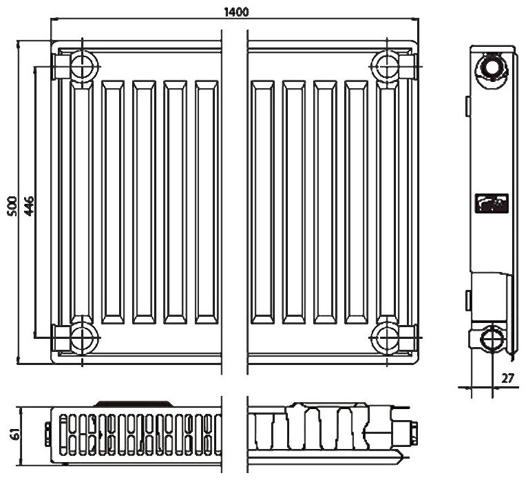 Радиатор Kermi FKO 11 500 1400, панельный информация: