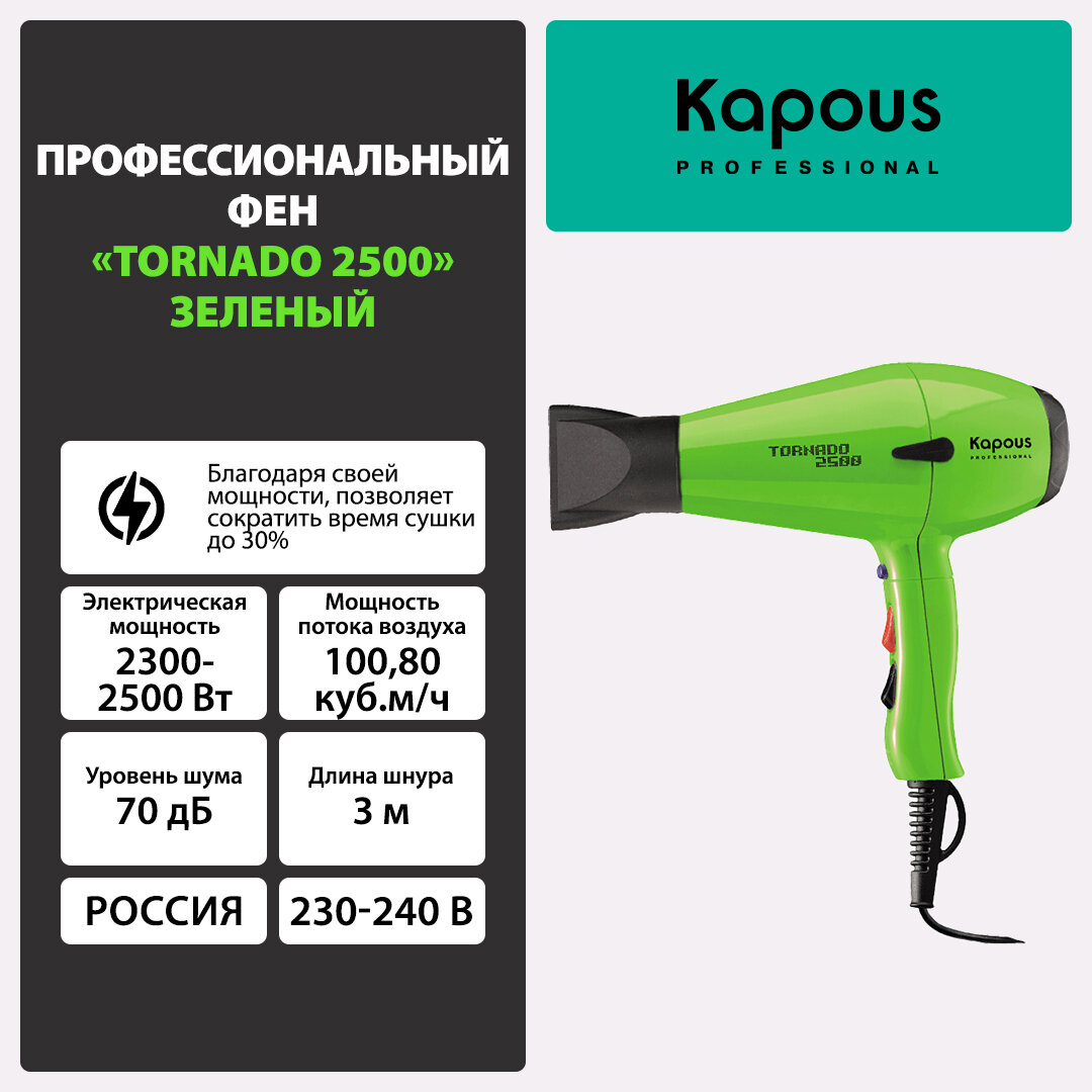 Фен Tornado 2500 Kapous, зеленый 5 083 ₽
