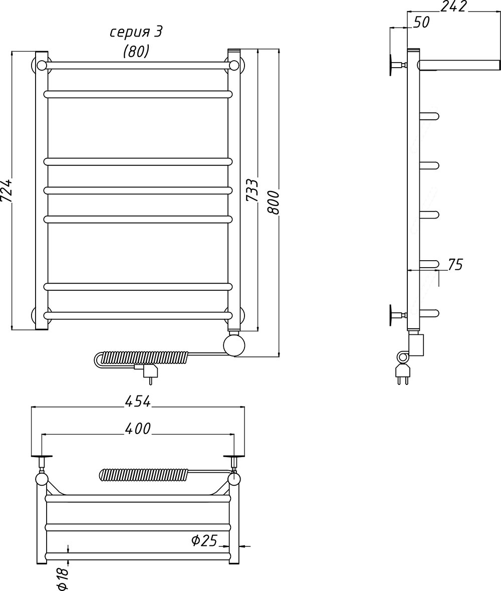 Электрический полотенцесушитель Тругор Пэк сп 6 ВГП 80x50 универсальный