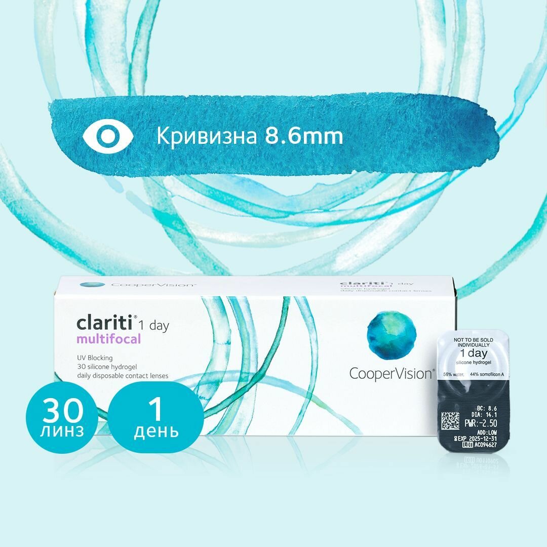 "Мультифокальные линзы CooperVision clariti 1-day multifocal (30 линз) Аддидация HIGH -2.75 R 8.6, однодневные, прозрачные"