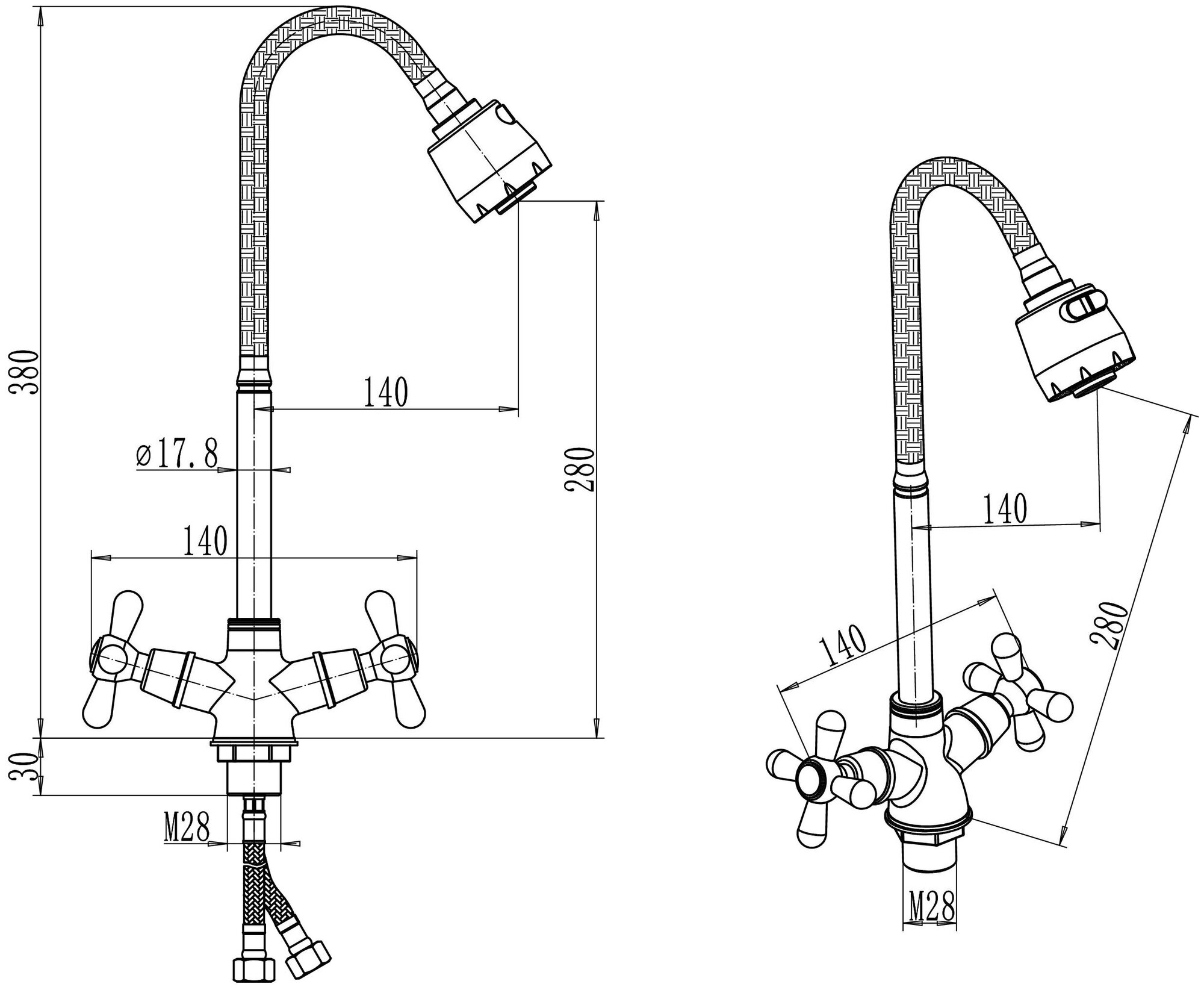 Смеситель для кухни (мойки) Ростовская Мануфактура Сантехники SL92-279F двухрычажный