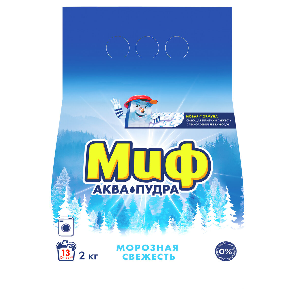 Порошок стиральный Миф Аквапудра для любого вида белья аромат морозной свежести автомат 2кг / моющее средство