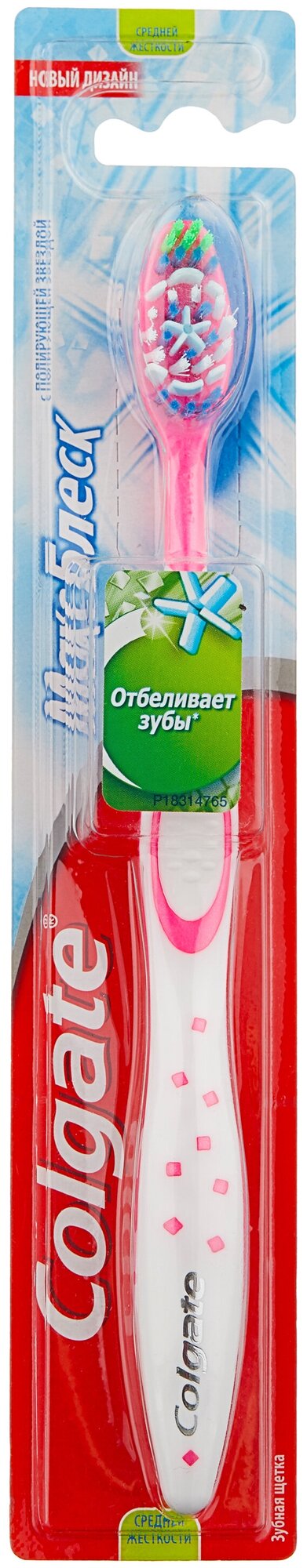 10 цен на COLGATE Макс Блеск отбеливающая зубная щетка, средней жесткости, розовая