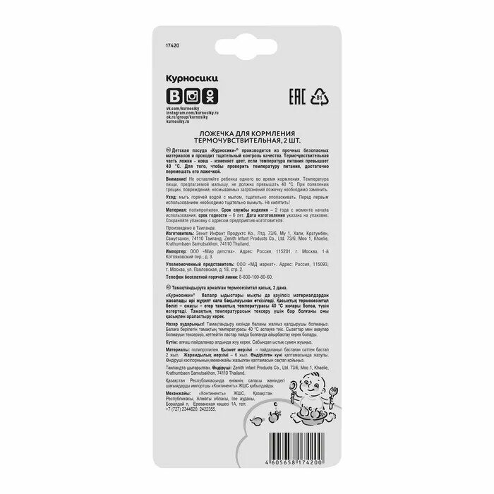 Курносики ложечка для кормления термочувствительная арт.17420 4+ 2 шт информация: