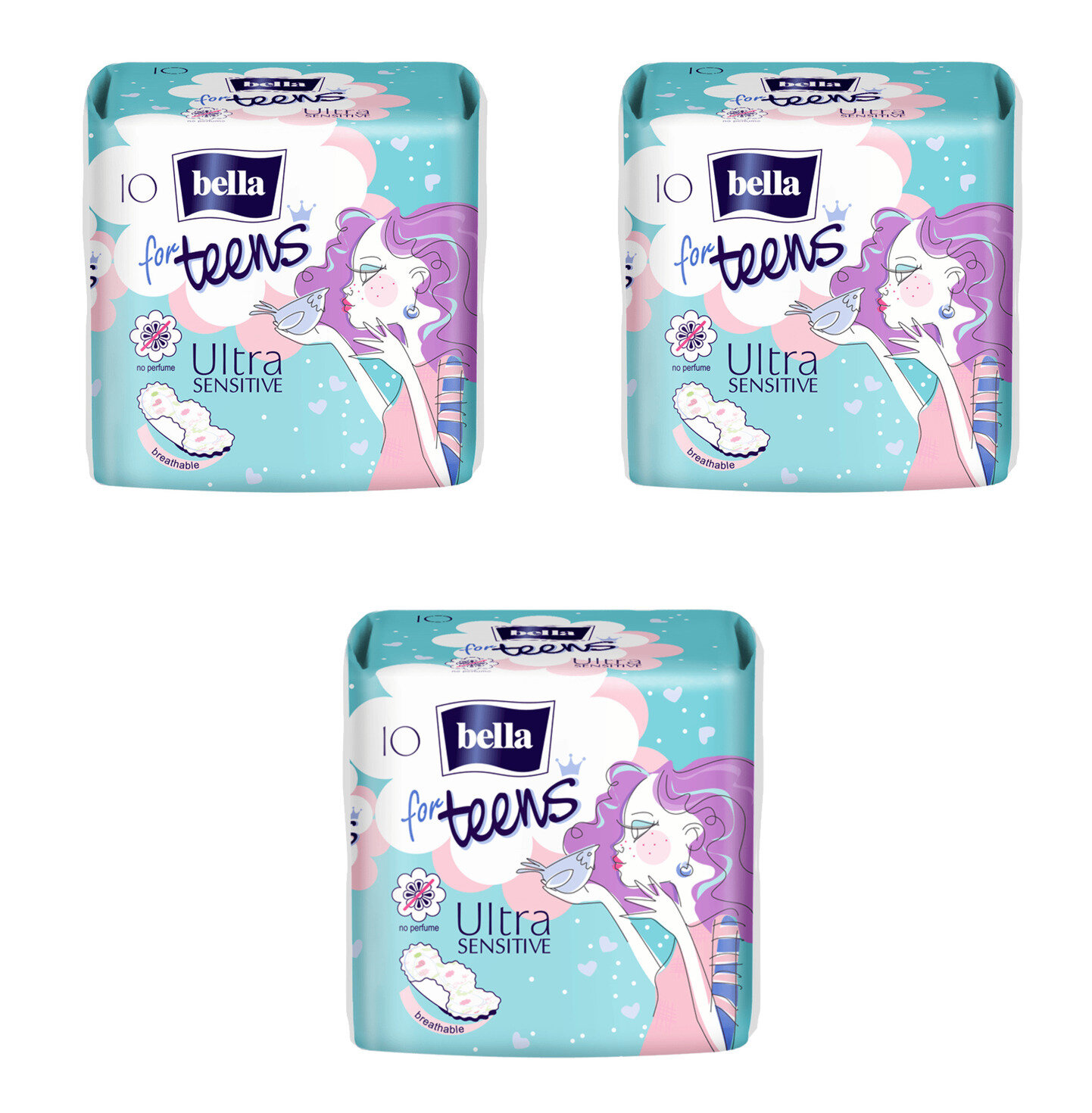 10 цен на BELLA Прокладки гигенические For teens Ultra sensitive, супертонкие, 10шт, 3 упаковки